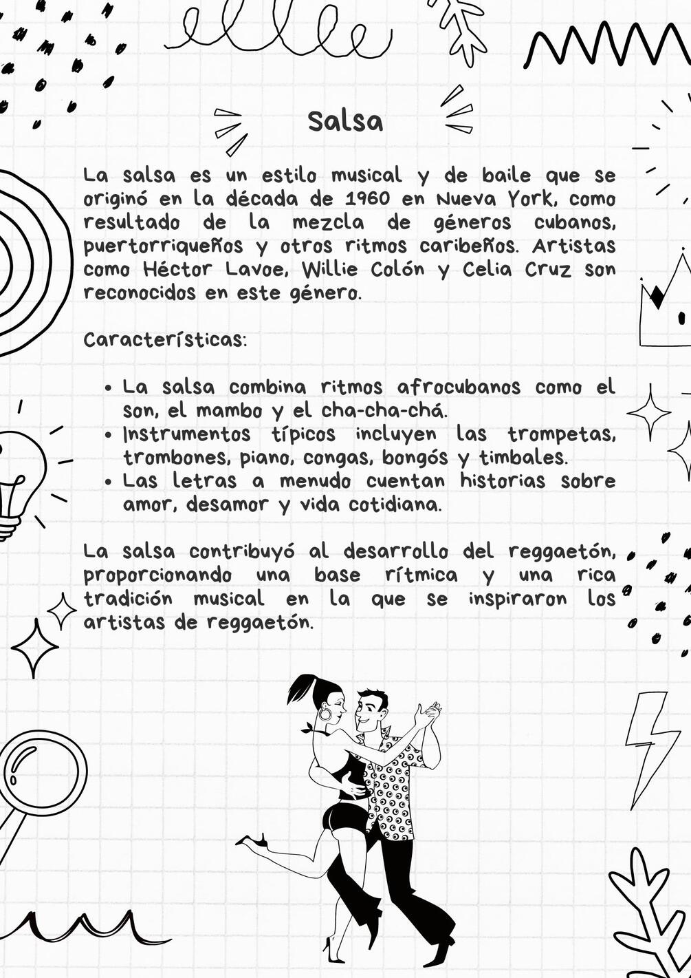 Para finalizar la actividad, cada grupo deberá completar un esquema donde se reflejen las similitudes y diferencias entre los estilos musicales estudiados. Este esquema les ayudará a consolidar el conocimiento adquirido y a fomentar el pensamiento crítico sobre cómo los diferentes estilos han influido en la evolución del Reggaetón.