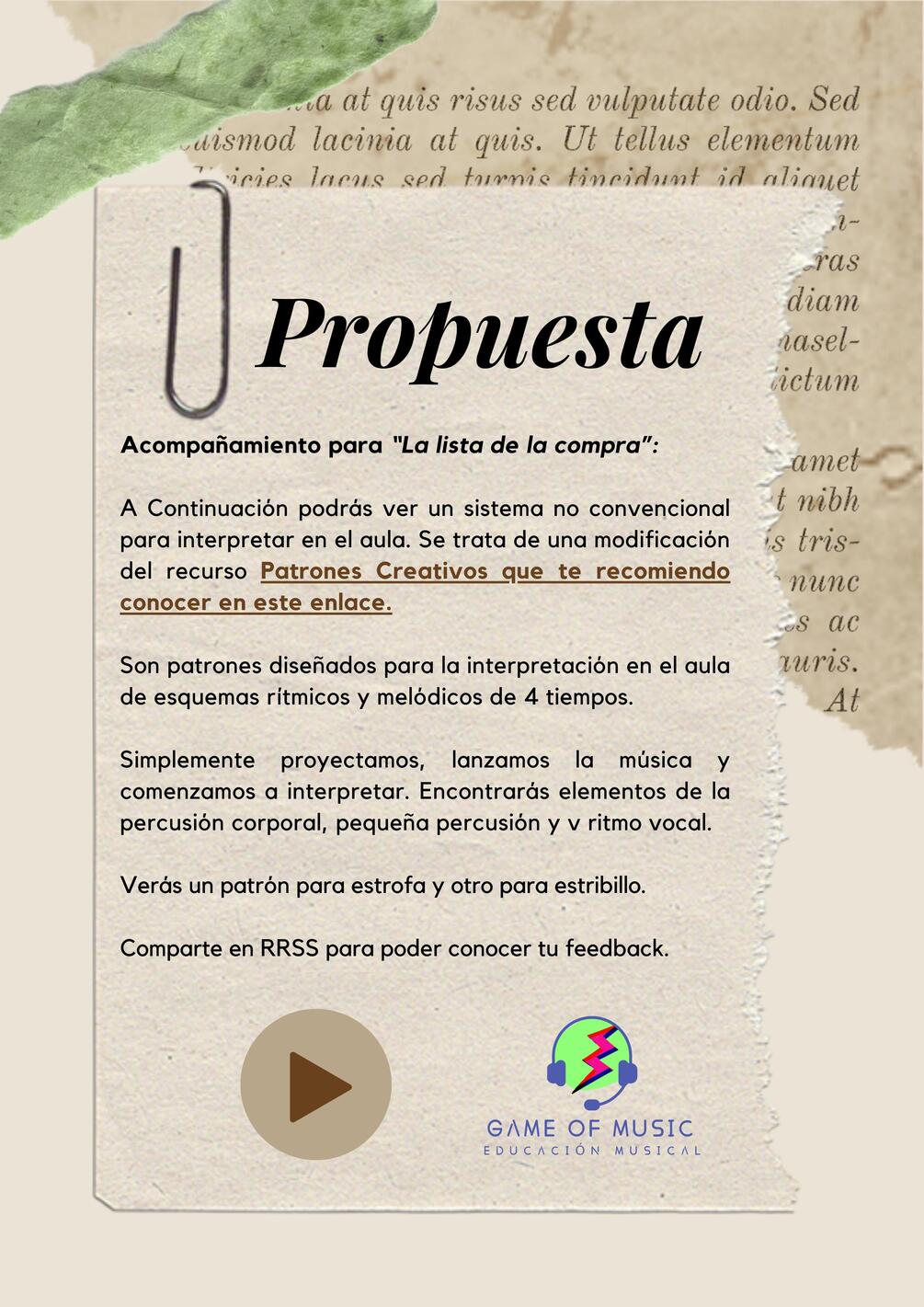 El acompañamiento ha sido creado con un recurso propio llamado Patrones Musicales